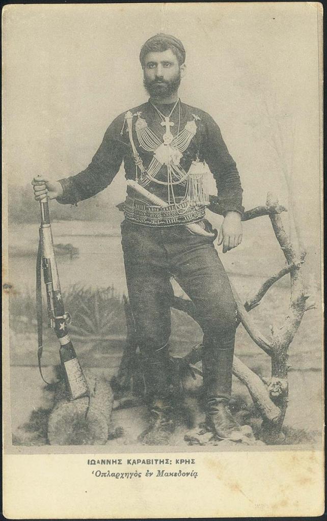 Μη βρε ανόητε έτσι, δεν είναι τρόπος αυτός, του λέγω. Και βάζω τους Μοναστηριώτες να τους δώσουν από μια μαχαιριά στο αριστερό πλευρό κι όποιος ζήσει χαλάλι του. Έτσι θα πάρουν οι νεοσύλλεκτοι τον αέρα του μαχαιριού» (Ι. Καραβίτης, επιμ. Γ. Πέτσιβα, 1994, Ο Μακεδονικός Αγών, Απομνημονεύματα, σ. 351).