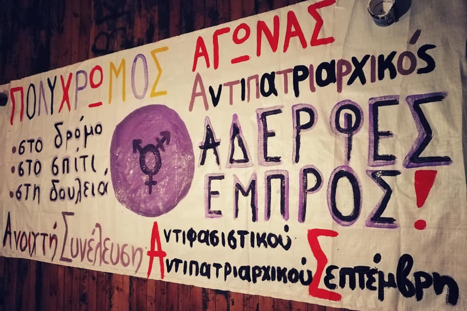 Θα μας βρείτε σε αυτό το πανό, του «Αντιφασιστικού – Αντιπατριαρχικού Σεπτέμβρη», μαζί με τις σημαίες της lgbtqi+ συλλογικότητας Sylvia Rivera και τις εφημερίδες και τις προκηρύξεις της εφημερίδας Η ΚΟΚΚΙΝΗ.