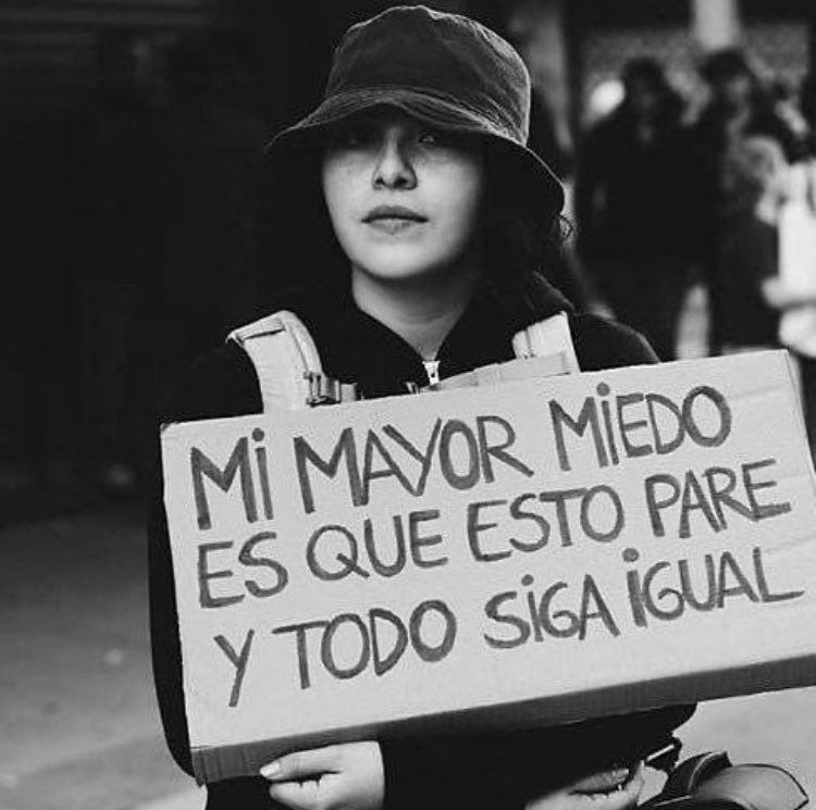 «Η δύναμη ενός πορτρέτου βρίσκεται σε αυτό το κλάσμα του δευτερολέπτου όπου κατανοούμε λίγο τη ζωή του ανθρώπου που φωτογραφίζεται», λέει ο Sebastiao Salgado. Σαν τις δικές του σπουδαίες φωτογραφίες, που διηγούνται τις ζωές ανθρώπων των υποτελών κοινωνικών τάξεων, είναι και η φωτογραφία από τις μεγάλες διαδηλώσεις της Χιλής όπου μια διαδηλώτρια νιώθει την ανάγκη να μοιραστεί αυτό που διαισθάνεται γράφοντας στο αυτοσχέδιο πλακάτ της ότι «ο μεγαλύτερος φόβος μου είναι πως όλα αυτά θα τελειώσουν και όλα θα γίνουν όπως πριν».