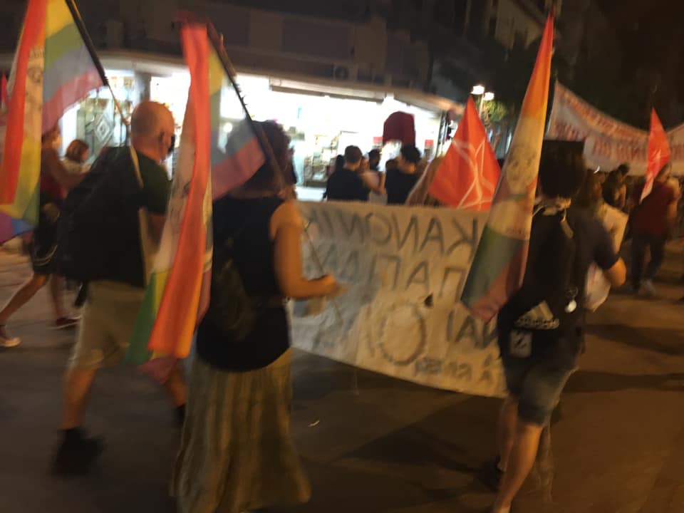 Από τη συμμετοχή μας στην πορεία αλληλεγγύης σε πρόσφυγες και μετανάστ(ρι)ες την Τρίτη 15 Σεπτέμβρη στη Θεσσαλονίκη με το πανό μας.