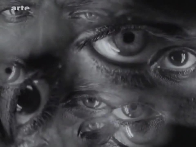(Η εικόνα από την ταινία «Metropolis» του Φριτς Λανγκ (1927), σκηνή με μία χορεύτρια ημίγυμνη που την κοιτούν πολλά τεράστια ζευγάρια μάτια ανδρών.)