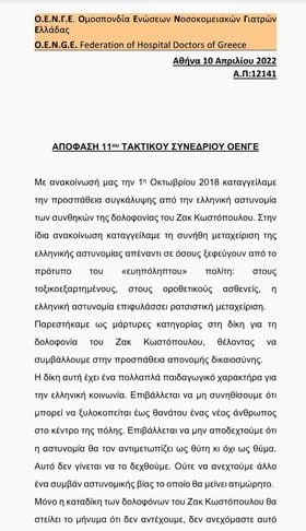Ζητούμε την απονομή δικαιοσύνης, την παραδειγματική τιμωρία των φυσικών αυτουργών για τη δολοφονία του Ζακ Κωστόπουλου και την επιβολή αντίστοιχης ποινής.