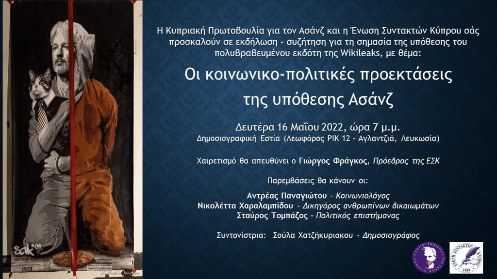 Διαδικτυακή εκδήλωση από την Κυπριακή Πρωτοβουλία για τον Ασάνζ και την Ένωση Συντακτών Κύπρου, Δευτέρα 16 Μάη 2022, 7μμ