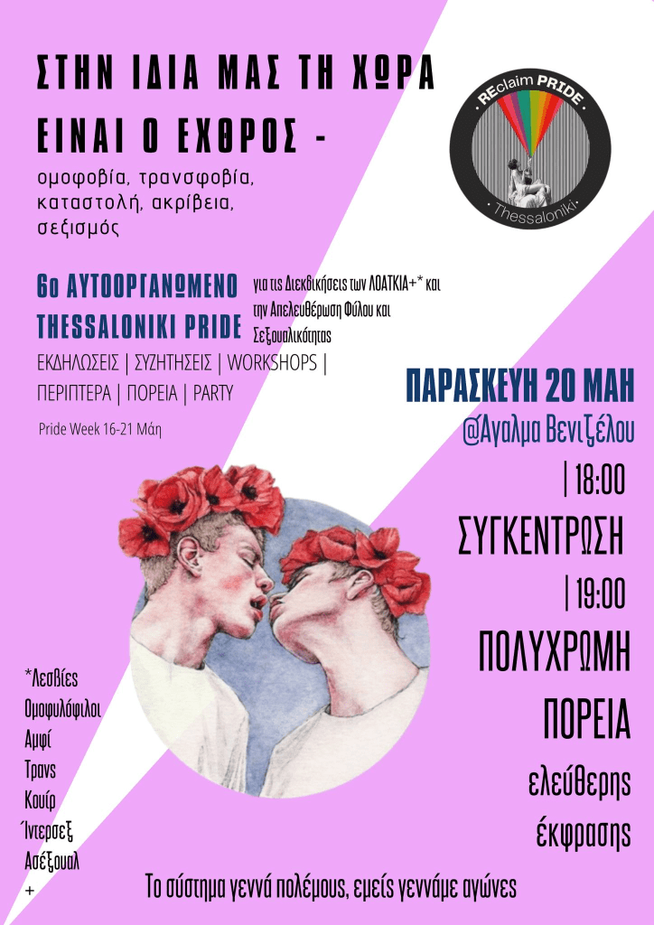 […] Εδώ μπορείτε να δείτε το κεντρικό πολιτικό κείμενο, καθώς και αναλυτικά όλο το πρόγραμμα εκδηλώσεων και εργαστηρίων του 6ου αυτο-οργανωμένου Thessaloniki Pride […]