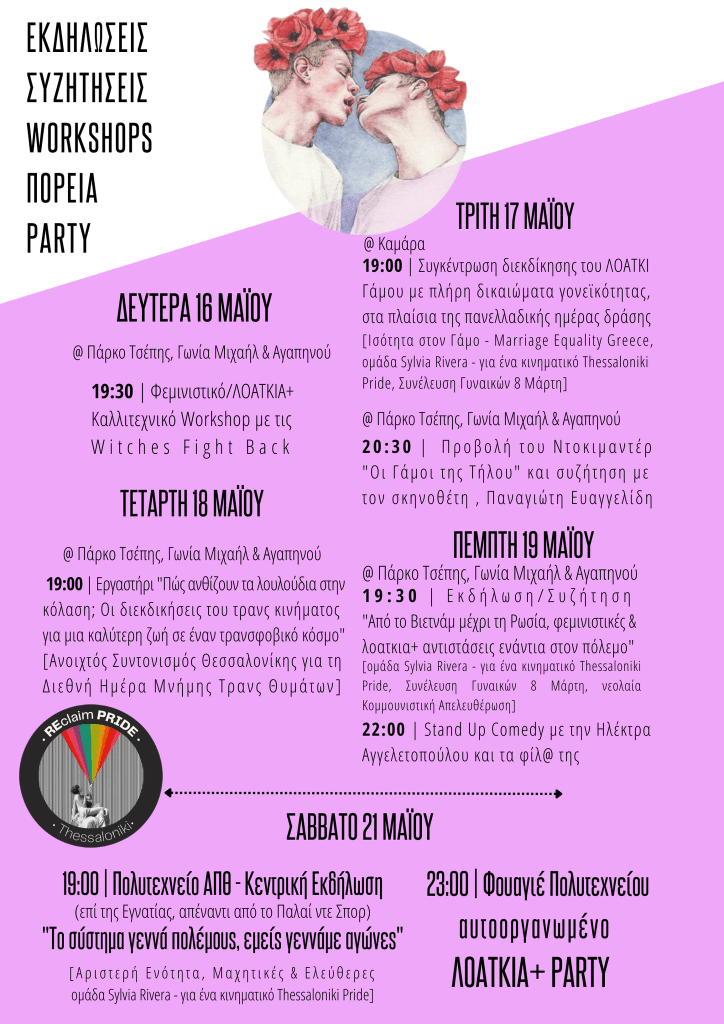 Διοργάνωση: Ισότητα στον Γάμο – Marriage Equality Greece, ομάδα Sylvia Rivera – για ένα κινηματικό Thessaloniki Pride, Συνέλευση Γυναικών 8 Μάρτη