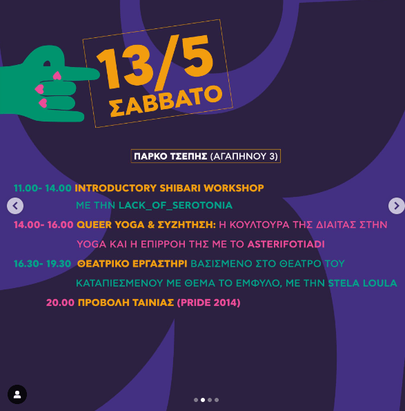 Η ομάδα Σεμιναρίων της ΦΥ.ΛΙΣ. σας προσκαλεί σε ένα διήμερο Πολυθεματικό Φεμινιστικό Φεστιβάλ στις 13-14 Μαΐου στο Πάρκο Τσέπης, Αγαπηνού 3 για να γνωριστούμε, να εκφραστούμε καλλιτεχνικά, να οργανωθούμε και να δημιουργήσουμε παρέα ένα φεμινιστικό safe space για όλα μας. Μέσα από δράσεις που συνδυάζουν την Τέχνη με το Φεμινισμό θα ανακαλύψουμε τους τρόπους με τους οποίους μπορούμε να διεκδικήσουμε χώρο, ορατότητα και ακουστικότητα στην πόλη μας.