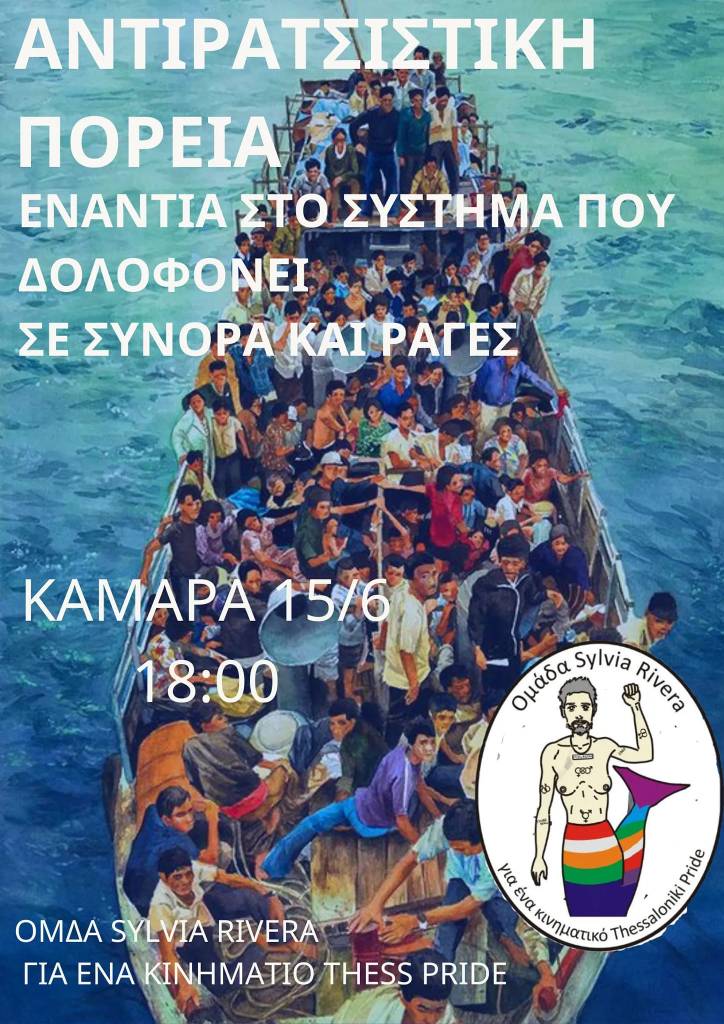 Ανακοίνωση από την ομάδα Sylvia Rivera και κάλεσμα σε αντιρατσιστική πορεία στη Θεσσαλονίκη για το ναυάγιο στην Πύλο και τη δολοφονική πολιτική των κλειστών συνόρων