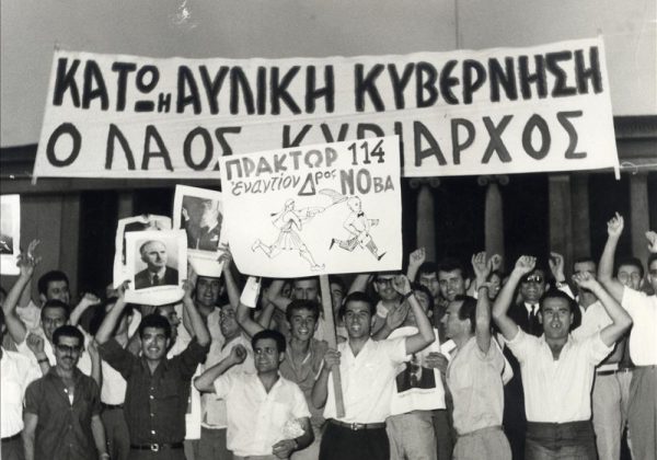 Στα συνθήματα του κόσμου, που κατεβαίνει να διαδηλώσει, κυριαρχεί το «1-1-4». Πρόκειται για αναφορά στο τελευταίο άρθρο του Συντάγματος, που όριζε πως, αν παραβιαστούν οι διατάξεις του, τότε «ο πατριωτισμός των Ελλήνων» και μόνο θα επιβάλλει την τήρησή τους. Όμως ήδη, από τη βραδιά της 17ης Ιούλη, άρχισε να ακούγεται στον δρόμο το σύνθημα «Δημοψήφισμα». Ο κόσμος συνειδητοποιεί, σε ελάχιστο χρόνο, πως δεν αρκεί να επιστρέψει η νόμιμη κυβέρνηση στη θέση της. Είναι απόλυτη ανάγκη να ξεπατωθεί, μια για πάντα, η σφηκοφωλιά των Ανακτόρων, ο βασιλιάς και η καμαρίλα του, το πραγματικό αρχηγείο σύσσωμης της Δεξιάς.