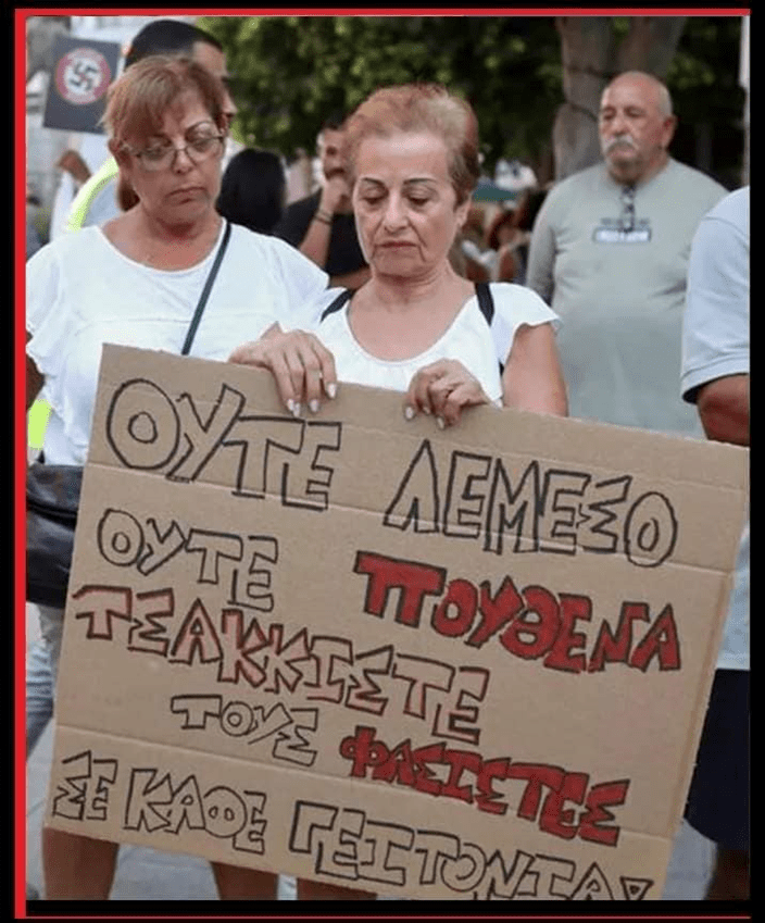 Εν τω μεταξύ, προοδευτικές, δημοκρατικές και αριστερές «από τα κάτω» δυνάμεις, φαίνεται να αξιολογούν ως ιστορική επιταγή την ανάγκη συγκρότησης ενός ενιαίου, αδιάσπαστου αντιφασιστικού μετώπου, προκειμένου να στηθεί ένα αποτελεσματικό ανάχωμα στην περαιτέρω συρρίκνωση και διολίσθηση της δημοκρατίας.Τα δύο ρατσιστικά πογκρόμ σε Χλώρακα και Λεμεσό λειτούργησαν σαν δυνατά χαστούκια, που ξύπνησαν τον κοιμισμένο γίγαντα, τον κόσμο της Αριστεράς και των κινημάτων στην Κύπρο. Η παθιασμένη αντιφασιστική διαδήλωση, που οργανώθηκε στη Λεμεσό το Σάββατο 2 Σεπτέμβρη, την επόμενη κιόλας μέρα μετά τη φασιστική επιδρομή, ήταν πολύ μαζική, παρόλο που είχε καλεστεί από μικρές ομάδες του αντιεξουσιαστικού και φεμινιστικού χώρου. Ακολούθησε στις 4 Σεπτέμβρη διαδήλωση αλληλεγγύης από το ΑΚΕΛ, ενώ μεγάλη πορεία με στήριξη δεκάδων οργανώσεων προγραμματίζεται στις 10 Σεπτέμβρη.