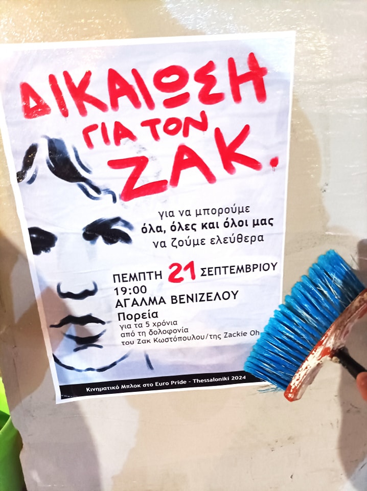 Στις 15 Δεκέμβρη, ξεκινάει η δίκη για τη δολοφονία του Ζακ σε δεύτερο βαθμό. Είναι πολύ σημαντικό με τους αγώνες μας και την ενότητα στη δράση να κρατήσουμε τη μνήμη του και τον τρόπο θανάτου του ζωντανά, να οργανώσουμε τις δυνάμεις μας για να ασκήσουμε πιέσεις για να πετύχουμε τη δικαίωσή του. Γιατί, δικαίωση για τον Ζακ σημαίνει τελικά δικαίωση για κάθε ΛΟΑΤΚΙ άτομο που υποφέρει σε μια κοινωνία που νιώθει πως δεν “χωράει”, για τον Μάγγο, τον Καρυώτη, τον Σιράζ Σαφτάρ, την Όλγα Δημητροπούλου, για κάθε άνθρωπο που παλεύει καθημερινά ενάντια στα “θηρία” του συστήματος και της κυβέρνησης που το υπηρετεί.