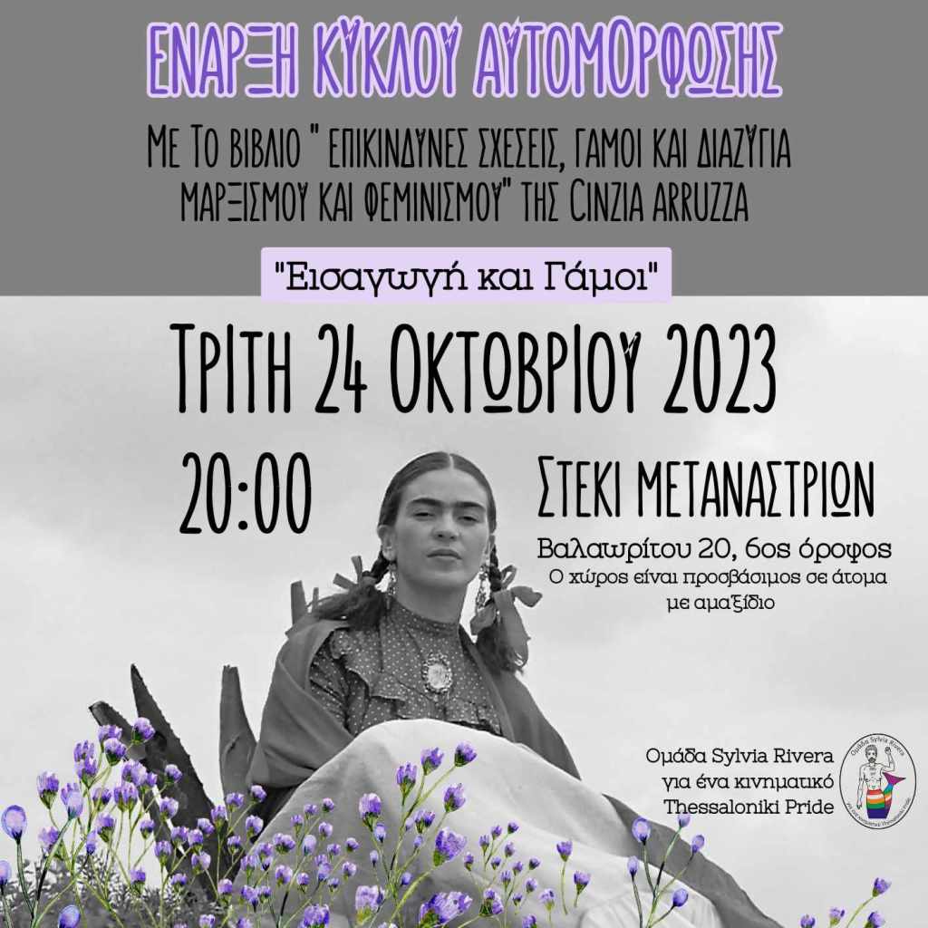Την Τρίτη 24/10 ξεκινά ο νέος κύκλος αυτομόρφωσης της ομάδας, αυτή τη φορά με το βιβλίο της Cinzia Arruzza «Επικίνδυνες σχέσεις: Γάμοι και διαζύγια μαρξισμού και φεμινισμού».