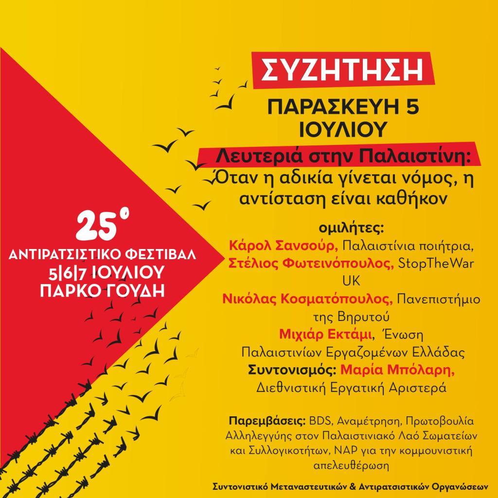 Το 25ο Αντιρατσιστικό Φεστιβάλ Αθήνας επιστρέφει για να δείξει ότι από την Πύλο έως την Παλαιστίνη: “Δεν υπάρχει ειρήνη, χωρίς δικαιοσύνη!”![]()