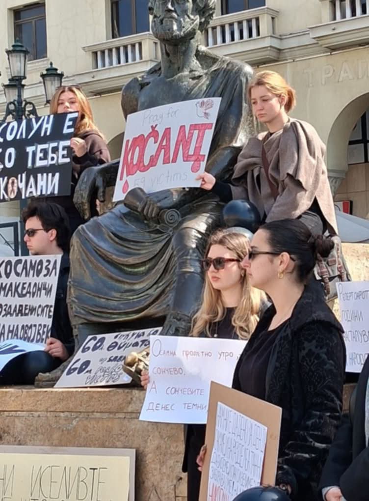 „Сум студентка тука во Солун, како и многу други студенти. Сакавме да ја изразиме нашата тага и солидарност со луѓето во Кочани, со жртвите и нивните семејства што минуваат низ толку трагично искуство“, изјави Деспина од Охридско. „Делувавме како заедница, и тоа нè прави посилни“.
