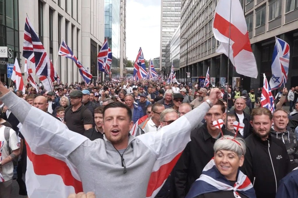 Στις 13 Σεπτέμβρη υπήρχε κάλεσμα για διαδήλωση από τους ρατσιστές με πρωτοβουλία ενός καθαρόαιμου φασίστα, του Τόμι Ρόμπινσον. Ανταποκρίθηκαν σχεδόν 100.000 από τον ακροδεξιό εσμό κάθε φυράματος και απόχρωσης. Απέναντί τους αντιτάχθηκαν μερικές χιλιάδες αντιρατσιστ(ρι)ες. Οι αριθμοί είναι ανησυχητικοί. Εκτιμάται ότι πρόκειται για τη μεγαλύτερη αριθμητικά ακροδεξιά διαδήλωση σε ολόκληρη τη βρετανική κινηματική ιστορία. Αν οι αριθμοί δεν είναι αρκετοί από μόνοι τους, ας προστεθεί το γεγονός ότι στη διαδήλωση των ρατσιστών κυμάτιζαν σημαίες του Ισραήλ, υπήρχαν συνθήματα υπέρ του Τραμπ και κατά της Παλαιστίνης και συνεχής επίκληση συνθημάτων από τις ανοησίες της «Μεγάλης Αντικατάστασης». Και κάπως έτσι σχηματίζεται η συνολική εφιαλτική εικόνα.