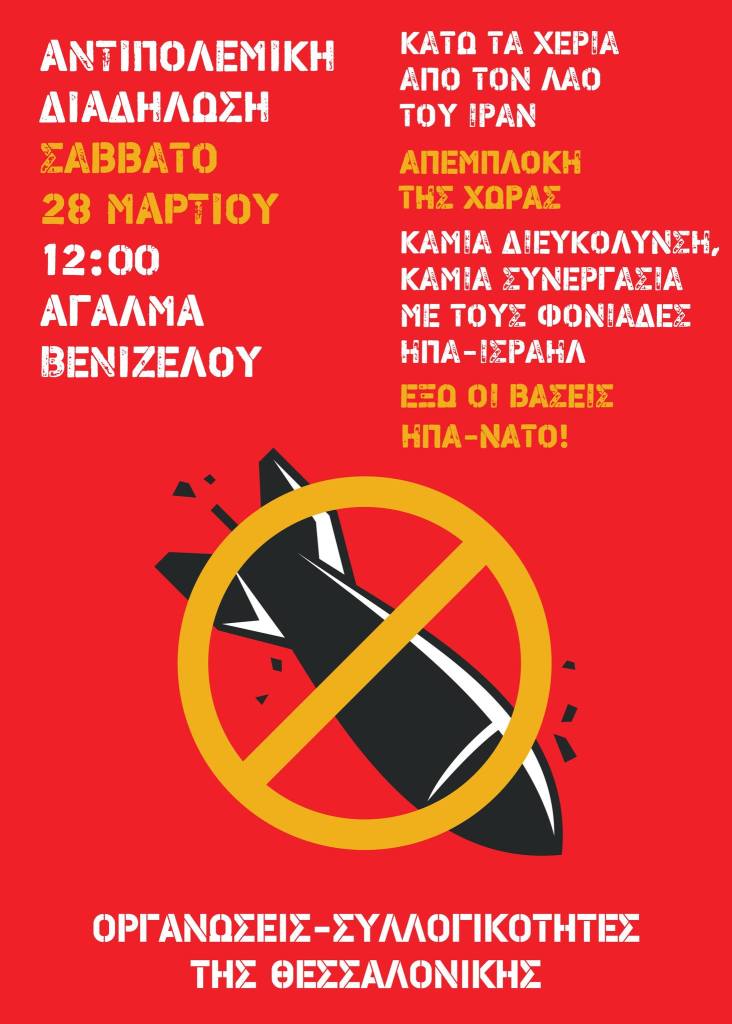 Οι λαοί –και ο δικός μας ο λαός– έχουν τη δύναμη! Μπορούν και πρέπει να αντισταθούν σ’ αυτές τις επικίνδυνες εξελίξεις. Με την ανάπτυξη μαζικού αντιιμπεριαλιστικού-αντιπολεμικού κινήματος. Προβάλλοντας την αλληλεγγύη και τη φιλία των λαών! Παρακαταθήκη μας είναι οι μαζικές και επίμονες διαδηλώσεις και δράσεις αλληλεγγύης στον ηρωικό Παλαιστινιακό λαό, είναι οι μεγαλειώδεις κινητοποιήσεις ενάντια στη δολοφονική πολιτική που προκάλεσε το έγκλημα στα Τέμπη.Καλούμε όλο τον λαό, τη νεολαία, τα σωματεία, τους συλλόγους, τις συλλογικότητες και οργανώσεις, όλους τους αγωνιστές σε πλατύ συντονισμό και σε κινητοποιήσεις!